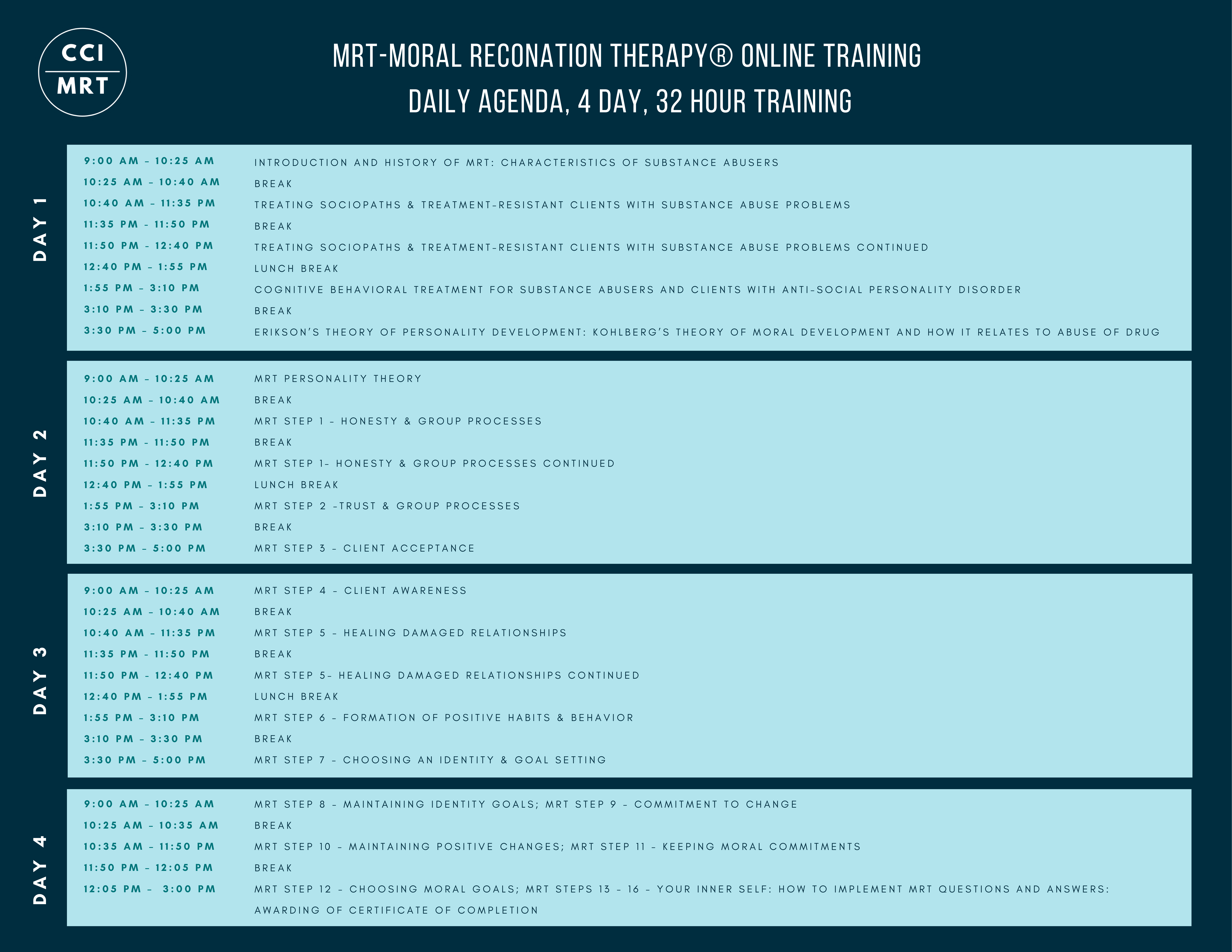 Participants will gain both the theoretical knowledge and hands-on skills needed to facilitate Moral Reconation Therapy-MRT® effectively.
